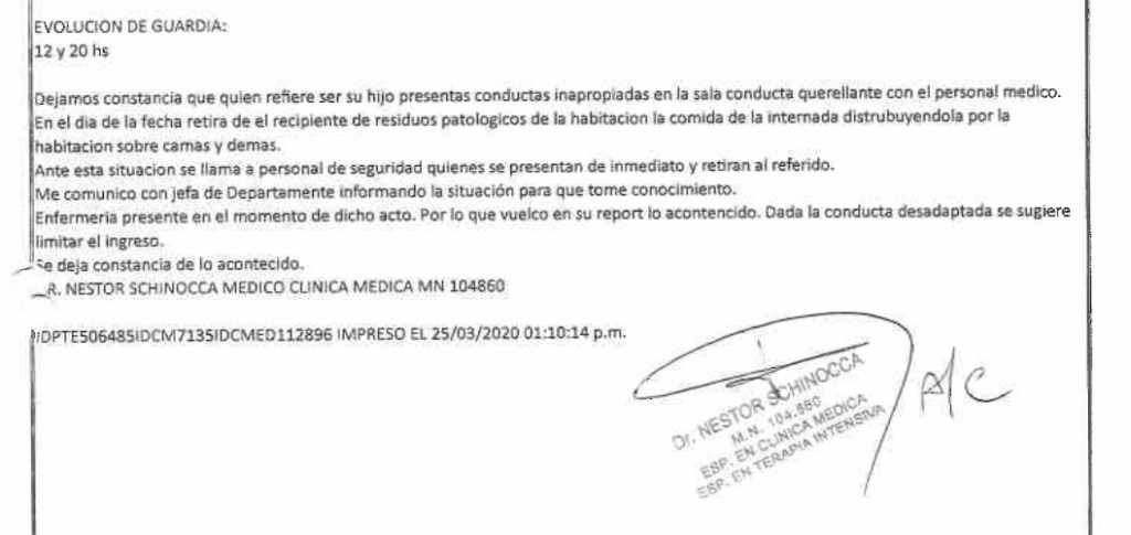 A continuación dejo el video del momento en que el médico decide expulsarme, y luego lo que escribió en la HC.